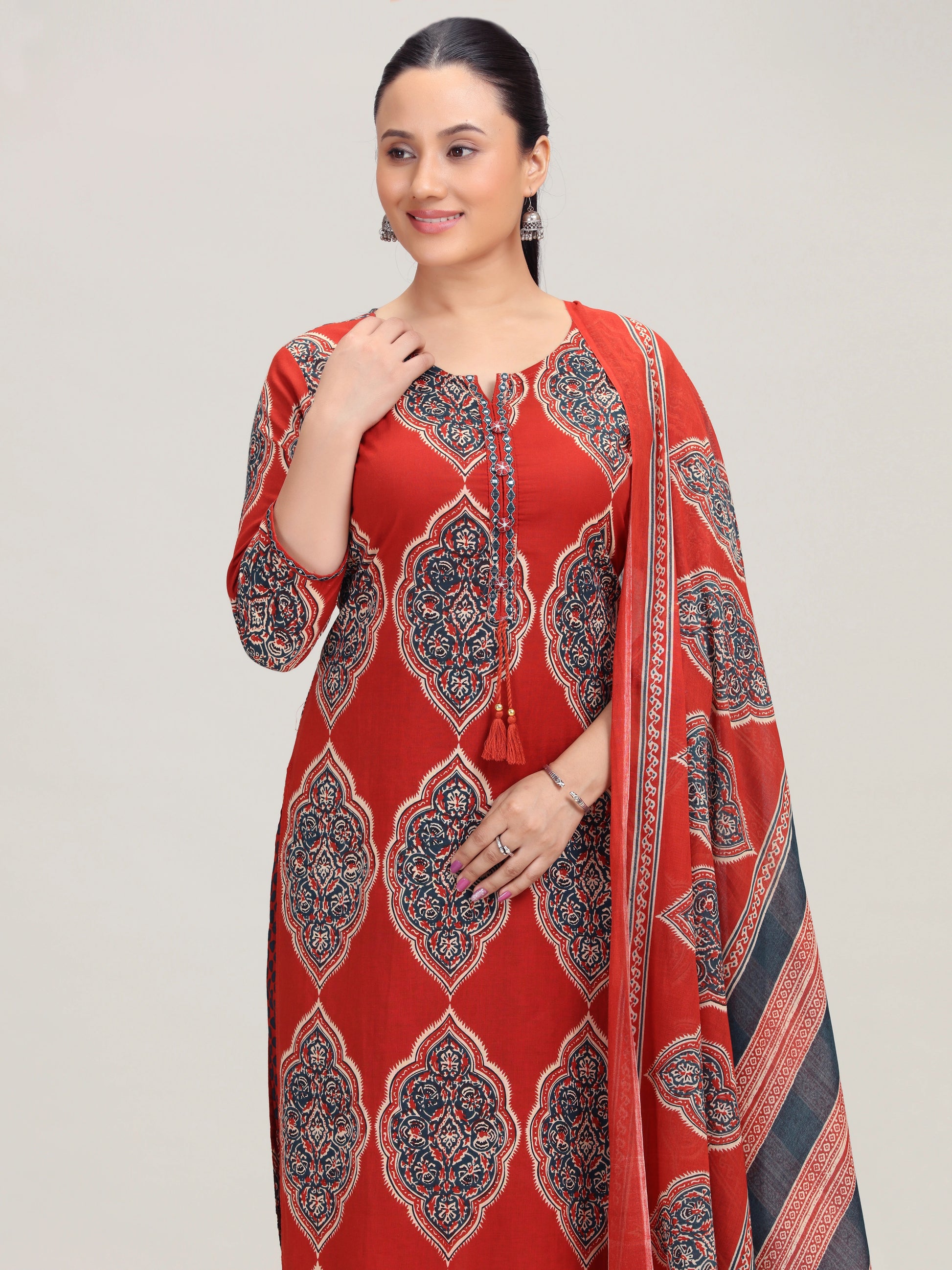 Maroon Printed Straight Cotton Ethnic Set
