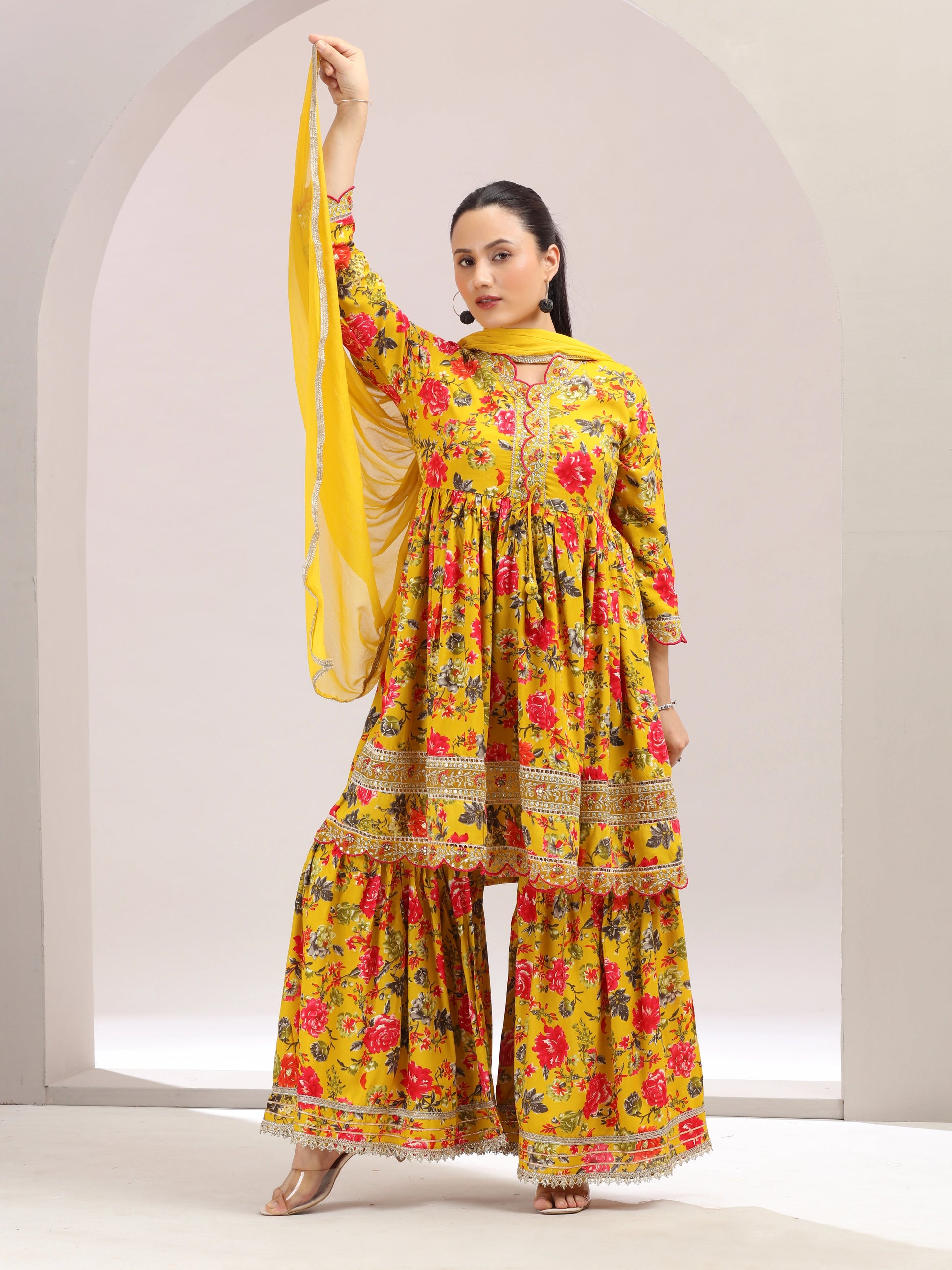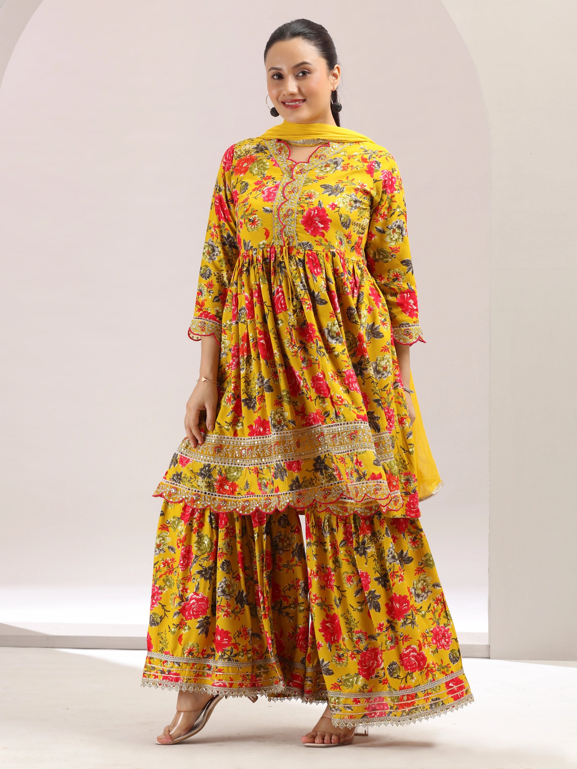 Mustard Embroidered Fit & Flared Ethnic Set
