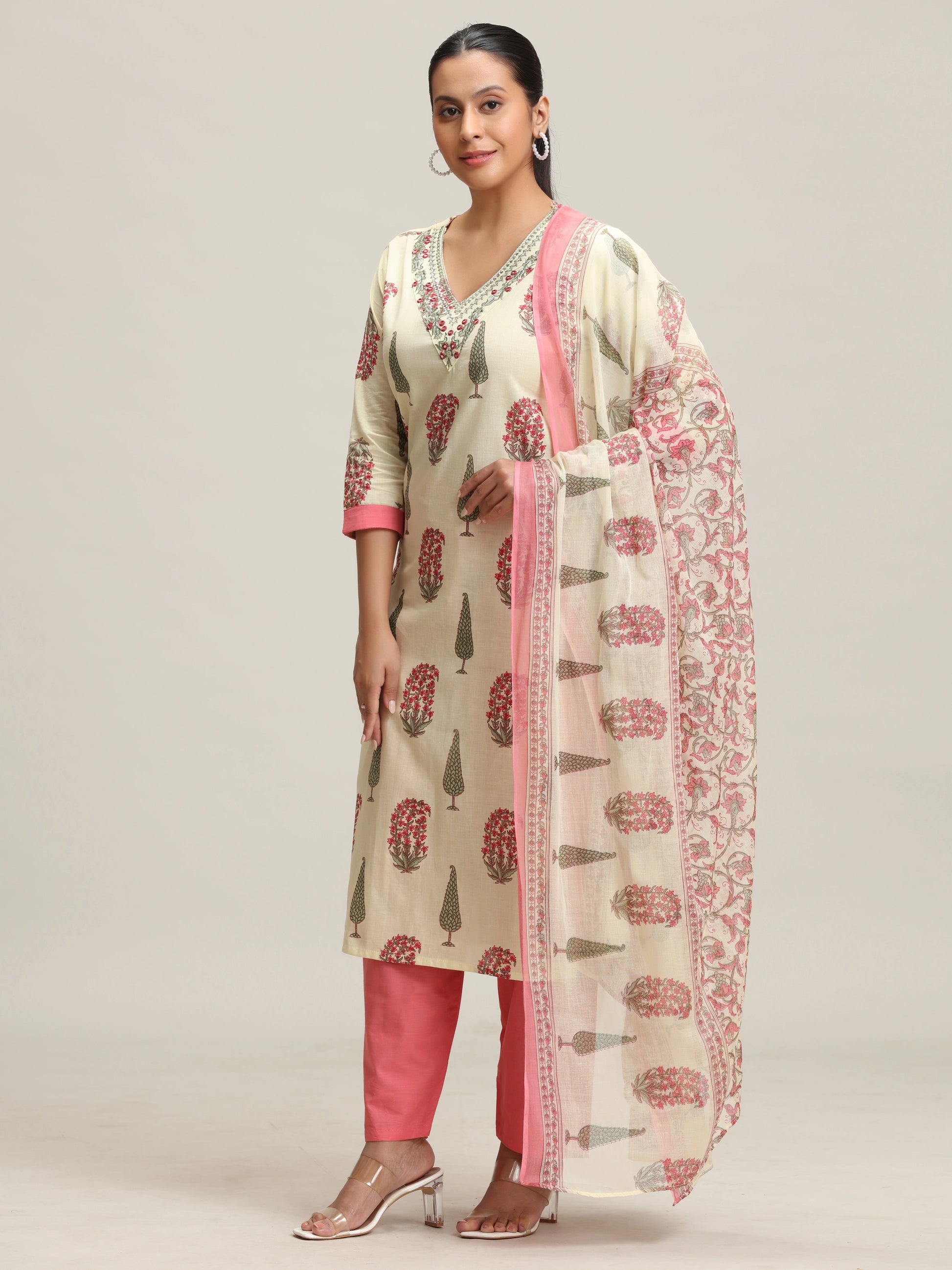 Yellow Printed Embroidered Ethnic Set